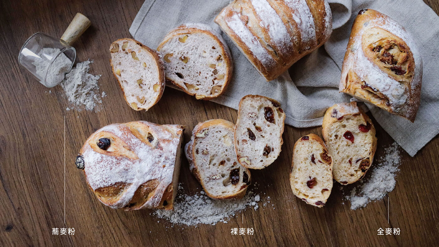 而這次的「麥麥三兄弟企劃-品嚐不同麥種呈現的風味」我們使用「裸麥、全麥、蕎麥」三種麥粉製作麵包,邀請你一起來品嚐看看他們三兄弟不同的風味。